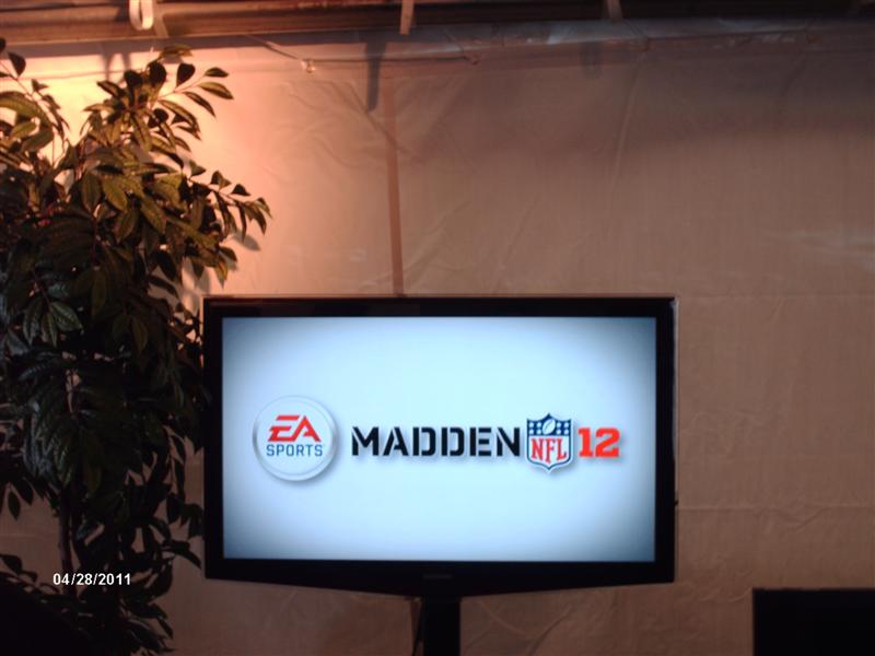 EA kicked off NFL Draft Week here in NYC in a big way with a unique event that brought newly crowned Madden NFL 12 cover athlete (and Cleveland Browns running back) Peyton Hillis to town for a unique LIVE cover shoot for the upcoming release. Hillis beat out (er, no pun intended) Michael Vick (who was the cover star on Madden 04). Despite a brief rainstorm about an hour or so in, the spirits of the enthusiastic crowd that gathered certainly wasn't dampened in the slightest.